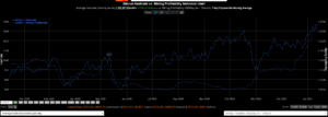 Por otro lado, en el entorno de los wallets y exchanges ( BTC en Exchange guarda intención de venta ) seguimos como ayer. Los mineros, según la métrica All Miners to All Exchanges Flow Mean, siguen con posiciones en wallets alejadas de los exchange. Pero, en lo que a las Ballenas se refiere ( una “Ballena” o gran tenedor a partir de 5000 BTC ), ayer llamábamos la atención sobre el “flattering” de la curva, en el gráfico de All Exchanges Whale Ratio (aumento relativo sobre los 10 flujos de BTC a Exchanges procedentes de las ballenas más importantes) pero a datos de ayer 13 de Enero, los grandes flujos ha subido considerablemente a niveles no vistos desde junio.