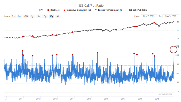 Indicador call / put ratio que indicaría momento de exceso de confianza del mercado y podría llevar a recortes severos en el medio plazo.