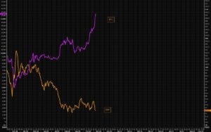 Pasada la euforia, la segunda oleada del COVID sigue cotizando; aunque es verdad que la posible victoria Demócrata favorece los intereses de Europa por sus exportaciones y de cara a una posible y deseable política comercial común frente a China. Por el momento durante la pre apertura de Wall St hoy, el trading está claramente de parte del Dólar; ha perdido de forma abrupta el soporte de 94.400 y su caída reactiva las correlaciones con los pares alfa de forex. En especial, además de los “clásicos” EURUSD y USDJPY, el par Bitcoin contra Dólar que presenta una correlación inversa muy activada y con momentum a la vez que, la tasa de hash de la crypto de referencia, ha activado un patrón alcista de doble suelo; dicha tasa, recordamos, es una de las métricas clave en las cripto monedas que se relaciona de forma muy estrecha con el momentum del activo. En este caso alcista.