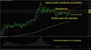 Y por último, dos commodities. El oro de verdad, el metal amarillo, hoy hay que vigilarlo de forma atenta ante posible ruptura de una de las Resistencias clave 1950 $onza.