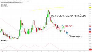 No obstante, la vela de ayer de volatilidad fue variable y, si especialistas como Ellen R . Wald sostienen que no habrá prisa por que suba el precio del barril, el mini rally de hoy, si sigue, podemos deberlo a los especuladores más que a los inisiders que son quiénes fijan precios, rangos y tanto acumulaciones como distribuciones del precio ( tendencias) cuando se producen.