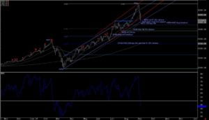 Los mismos analistas de JP muestran también un RSI – respecto a la cartera FAANG – en clara sobre venta, señal de un posible soporte en el sector tech (siguiente gráfico). Los cierres de Apple y Amazon se produjeron lejos de la MA de 20; AMZN con volumen neto ya comprador en 3.149 pero en la compañía de la manzana vendieron y siguieron vendiendo con la cotización en 112 $; los inversores siguen buscando un precio con alto descuento tras la burbuja.