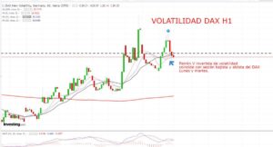 Respecto a Europa, DAX lleva dos sesiones de sube y baja en rango claro y con soporte más claro en MA 50 sesiones. Pueden darse nuevas oportunidades en el intra día guiándonos, como ayer por ejemplo, por la correlación inversa del índice de Frankfurt con la volatilidad