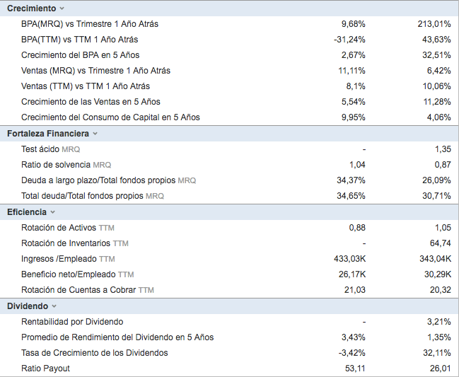 Algunos ratios de interés de la empresa frente al sector: