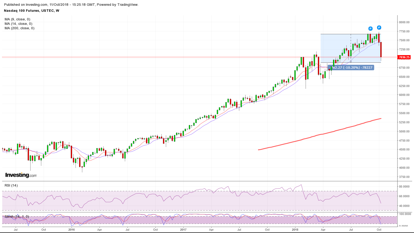 Chart NASDAQ Los 7000 ptos actuales estaría ya dentro del 10 % de la corrección.