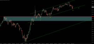 Observando bien en H4 vemos una especie de canal lateral alcista, lo tomamos como referencia (sobre todo la parte baja) para acabar de determinar si el precio puede alcanzar algún otro máximo antes de corregir.