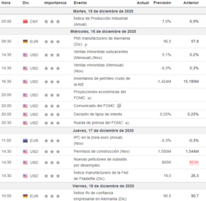 Para finalizar, recordar el calendario económico para esta próxima semana: