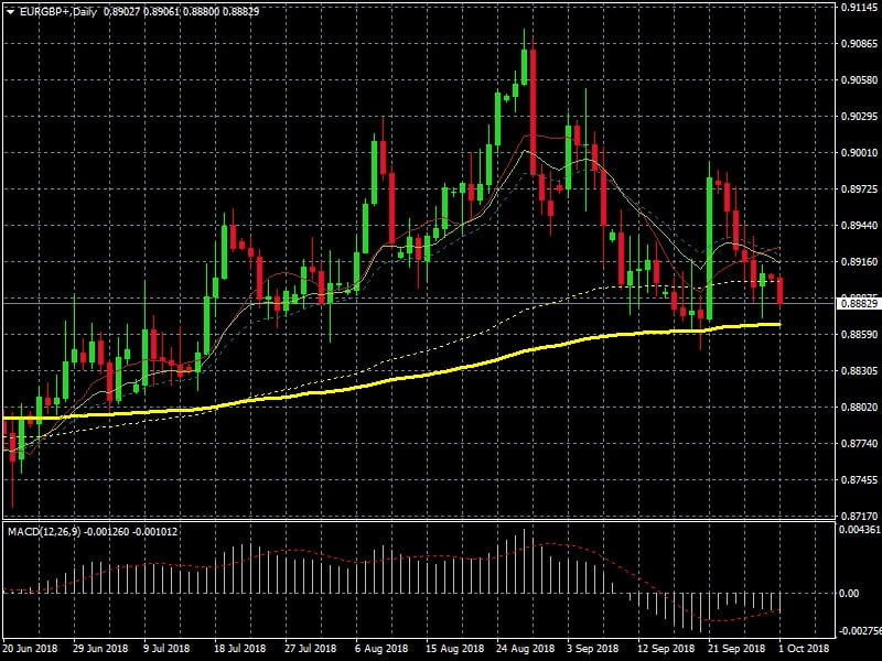 Mientras escribimos este artículo, en pleno congreso de los conservadores británicos, el Euro sigue depreciándose frente a la Libra , por lo tanto trading bajista para la divisa europea que pierde el soporte de la MA de 100 sesiones y se dirige al siguiente objetivo : MA 200 SESIONES en el entorno de 0’886.