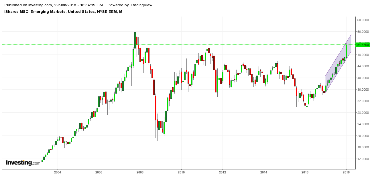 Gráfico largo plazo acciones países emergentes Morgan Stanley.