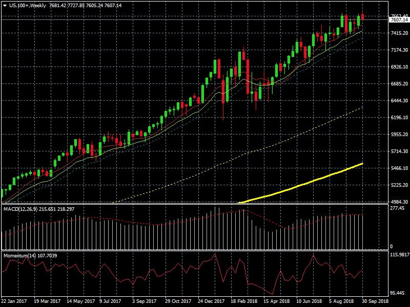 Chart medio plazo NASDAQ . El índice bursátil USA de mayor rentabilidad durante 2018. Por el momento no está afectado por la subida de tipos de interés. ¿Hasta cuando?