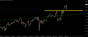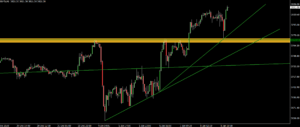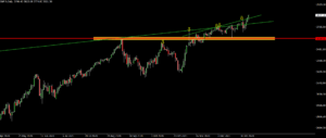 Además, si bajamos a gráfico más corto plazo (4Horas), vemos como la cotización retrocedió y plasmo en el gráfico un perfecto Throw Back (o retest a la última resistencia rota) antes de alcanzar el último máximo.