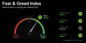 A nivel de Análisis Técnico, existe el llamado índice “Miedo y Avaricia”, conocido en inglés como el “Fear & Greed Index”. La codicia y el miedo se encuentran entre los espíritus animales que Keynes identificó como profundas influencias en las economías y los mercados. Este índice, de muy fácil interpretación, lo calcula el canal de noticias CNN Money, y se engloba dentro de la categoría de indicadores de sentimiento de signo contrario (la bolsa se moverá siempre en sentido contrario a lo que piense la mayoría). El índice se interpreta de la siguiente manera: