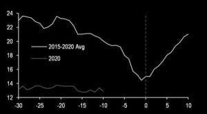 Esto lo observan estudiando el BID / ASK del USA Bond 30 Years. El problema para este 2020 es que, si miramos el trazo de la parte de abajo del gráfico , vamos retrasados con la media de los últimos cinco años para cumplir el patrón de recuperación.  ¿Le queda munición a la Reserva Federal ?