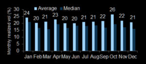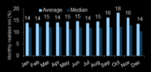 Sin duda la volatilidad, se trata de derivados y por lo tanto de cómo la volatilidad afecta al subyacente (Delta), y dentro del complicado mundo de la mencionada volatilidad podemos fijarnos en las pantallas que ha observado el mercado para preparar la sesión de hoy: La volatilidad realizada. Es decir el histórico, la media de volatilidad realizada (real) que han tenido los mercados durante los meses de septiembre.