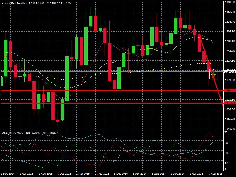 Como puede verse en el gráfico superior, de medio plazo, la vela de esta semana tiene dos días para testar e intentar quebrar el soporte formado por la trend bajista. Por ello, en el caso de encontrarnos con una apertura semanal el lunes 10 de septiembre, por debajo de los 1.1180 $ la onza , el oro podría ir a buscar mínimos de Noviembre de 2016.