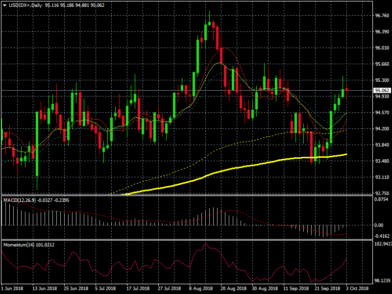 Chart diario Índice Dólar con indicador de momentum y MACD.
