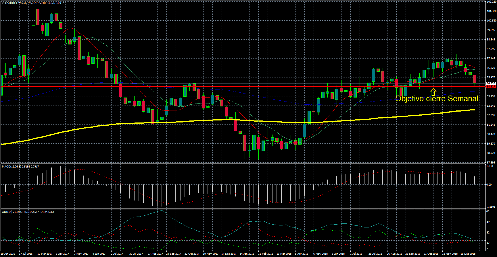 La consecuencia de esta caída es un repunte alcista claro en el EURUSD; par correlacionado de forma inversa a la cotización del mencionado índice dólar (USDIDX, DX o DXA). El objetivo bajista de cierre de este activo estaría en el entorno de los 94.600. Si a partir del lunes, activase el patrón bajista de suelo redondeado, el EURUSD quedaría habilitado, desde el punto de vista de análisis técnico, para testar cotizaciones en el entorno de los 1.160 debido a la correlación inversa que guardan ambos instrumentos.