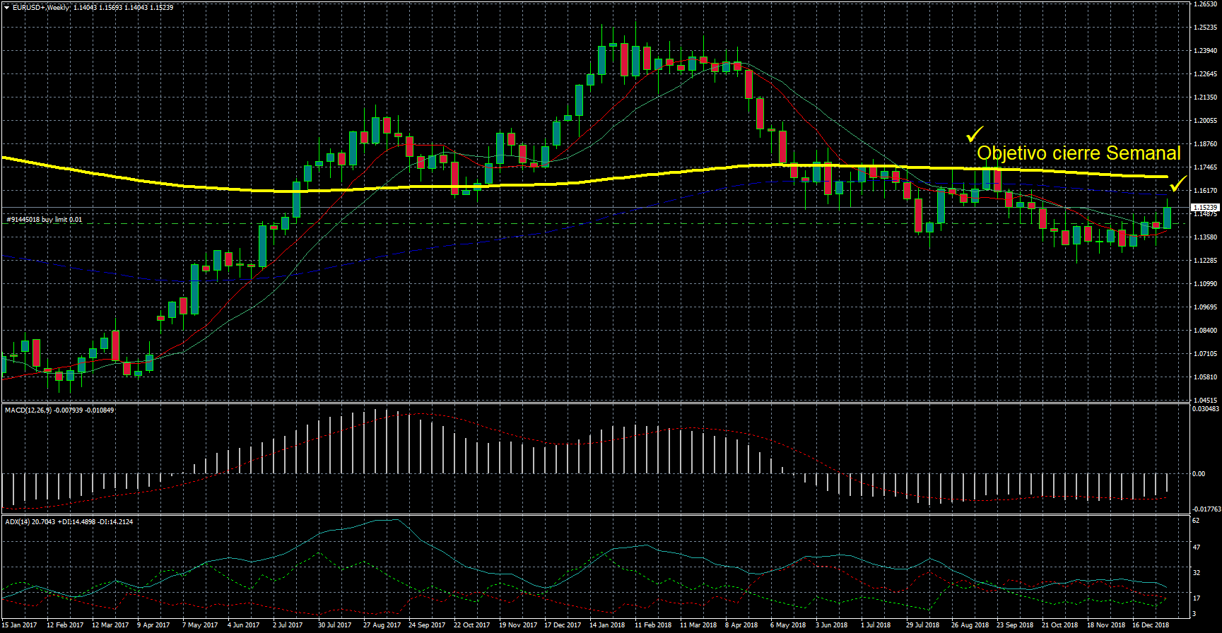 Gráfico Semanal EURUSD. Observen como es el chart contrario al índice dólar.