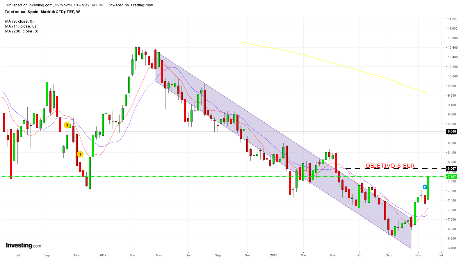 Chart Telefónica semanal. Técnicamente la situación es excelente ¿Se cumplirá el objetivo?