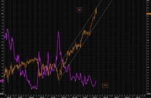 Volatilidad y cotización del Barril ponen sus relojes en hora y se activa la correlación inversa; ya no hay trampa alcista ( alza del barril y alza de la volatilidad OVX). Los que se sientan cómodos en el trading intra día, habrán aprovechado si han sido conscientes de la situación, que podía girarse de forma rápida en cualquier momento al volverse a activar la correlación inversa entre volatilidad del crudo y cotización del Barril.
