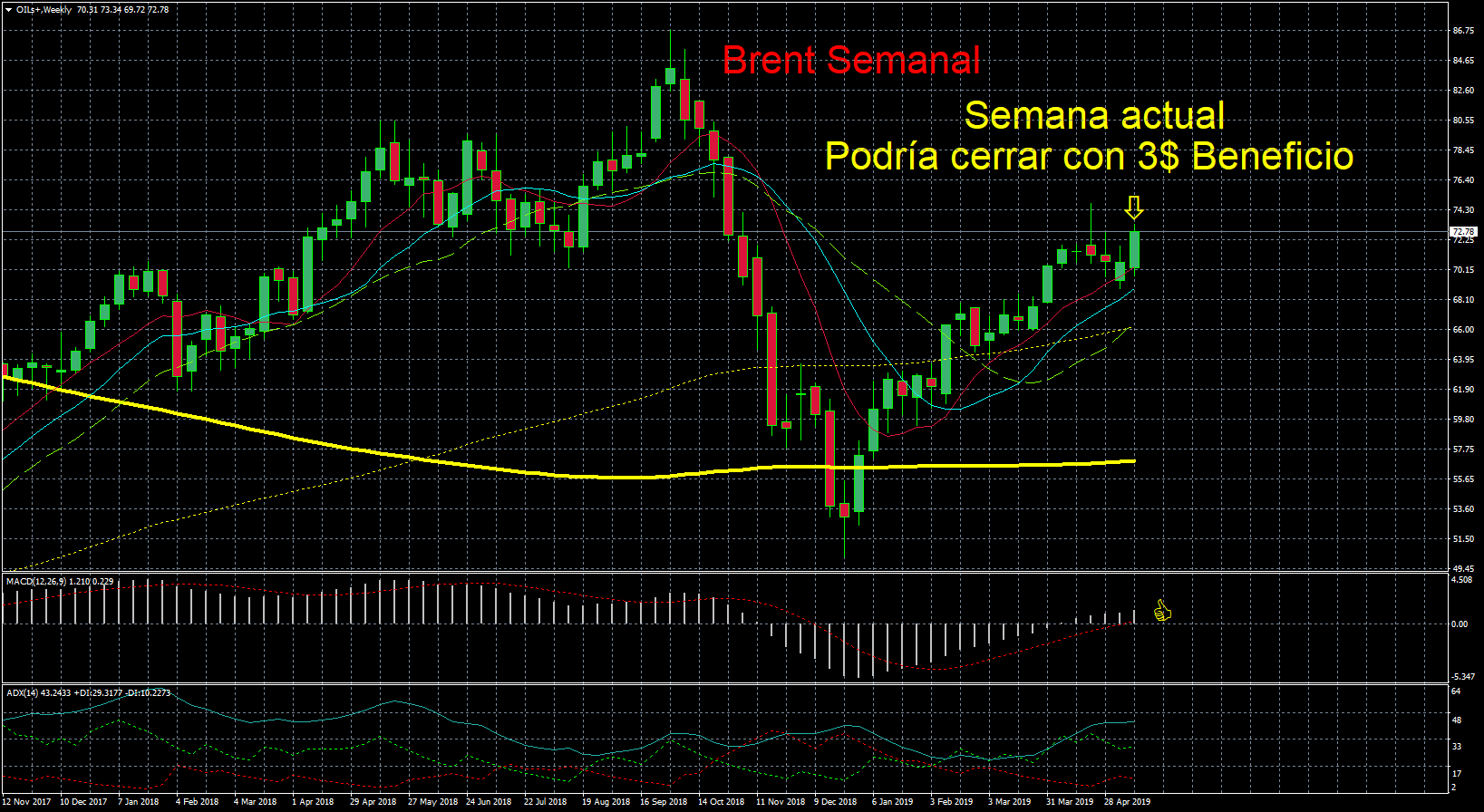 Por el momento el Barril de Brent es la excepción que confirma la regla con tendencia alcista reforzada como podemos comprobar en el ADX semanal y diario. A pesar de que las reservas de crudo han crecido y de que la producción de crudo en USA está en niveles máximos, las manos fuertes están comprando crudo en previsión de que se agrave el conflicto de EEUU con Irán y de que dentro de dos semanas la OPEP y Rusia decidan continuar o aumentar la reducción de la producción. Aunque esto último aún no lo sabemos y todo son especulaciones por el momento.