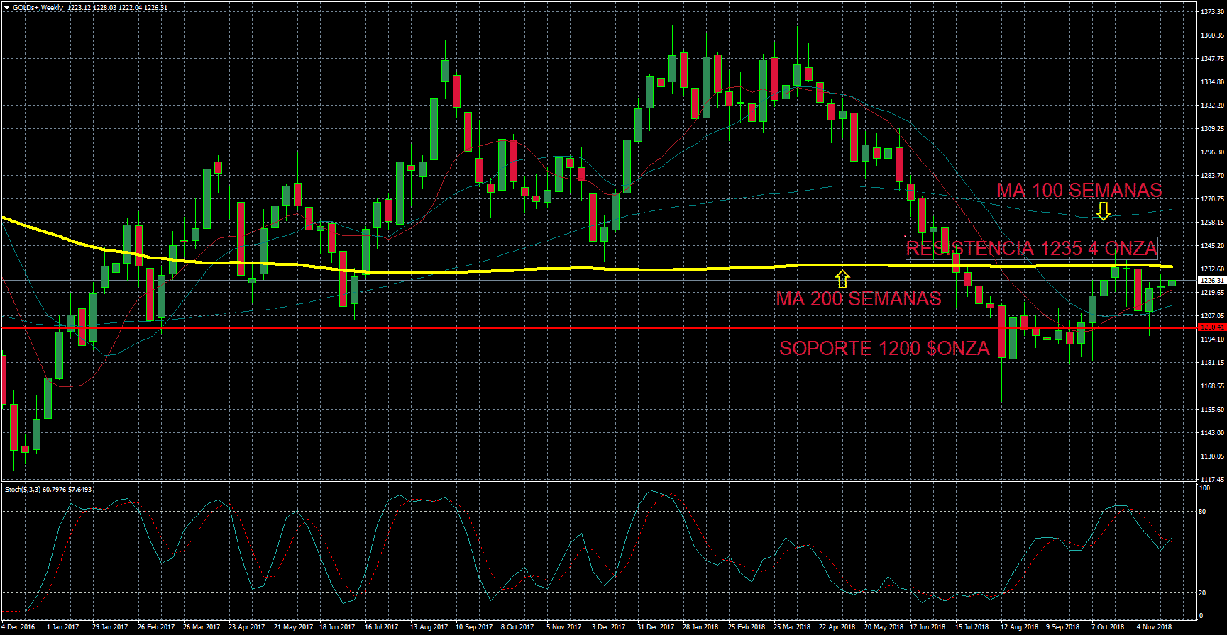 Rango semanal del oro. Estas referencias estarán presentes en todos los horizontes temporales.