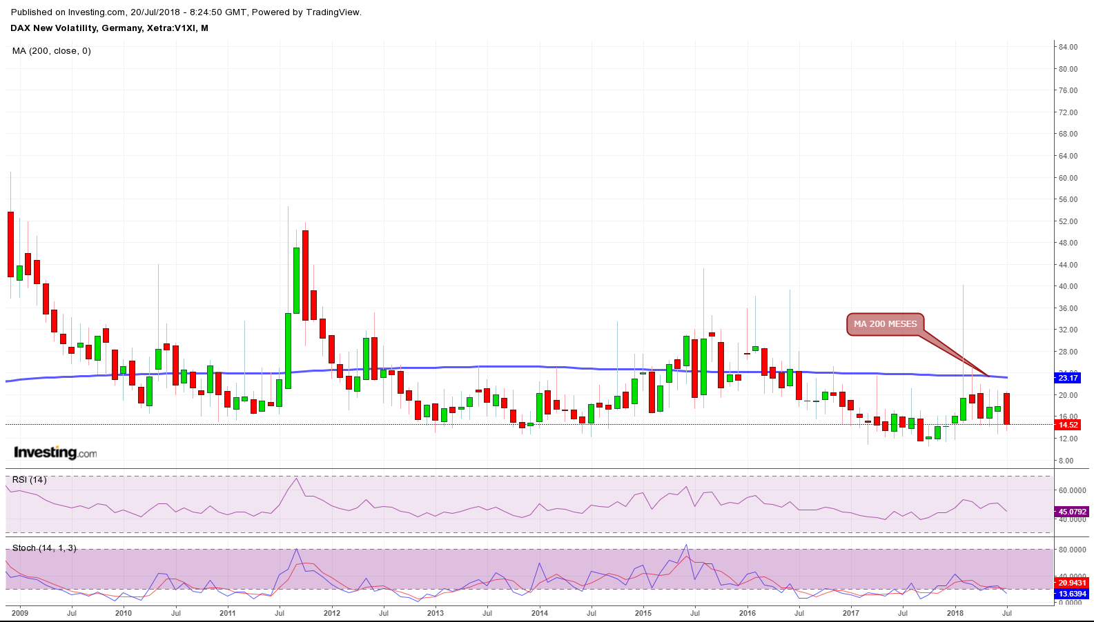De todas formas la volatilidad no está respondiendo como se esperaba ; en niveles altos. Si no que, en el caso del VIX que es la referencia, tiene un sesgo bajista principal que podría devolver la volatilidad a niveles de 2017. Recordamos que en febrero del pasado año, llegamos a niveles bajistas récord de volatilidad desde el 2007 y la crisis.