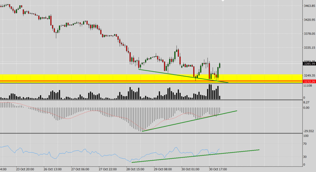 ⬇️ En gráficos inferiores (H1), observamos un claro patrón de distribución en el precio con pistas de posible divergencia alcista que podría hacer volver a los 3.500 puntos confirmando así el lateral que vienen comentando diferentes analistas hasta final de año…