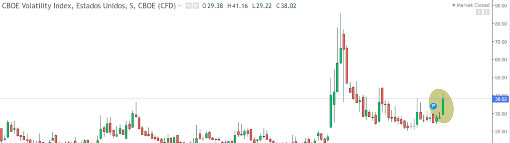 Cabe recordar que un VIX por encima de los 38/40 indica bolsa de muy alta volatilidad.